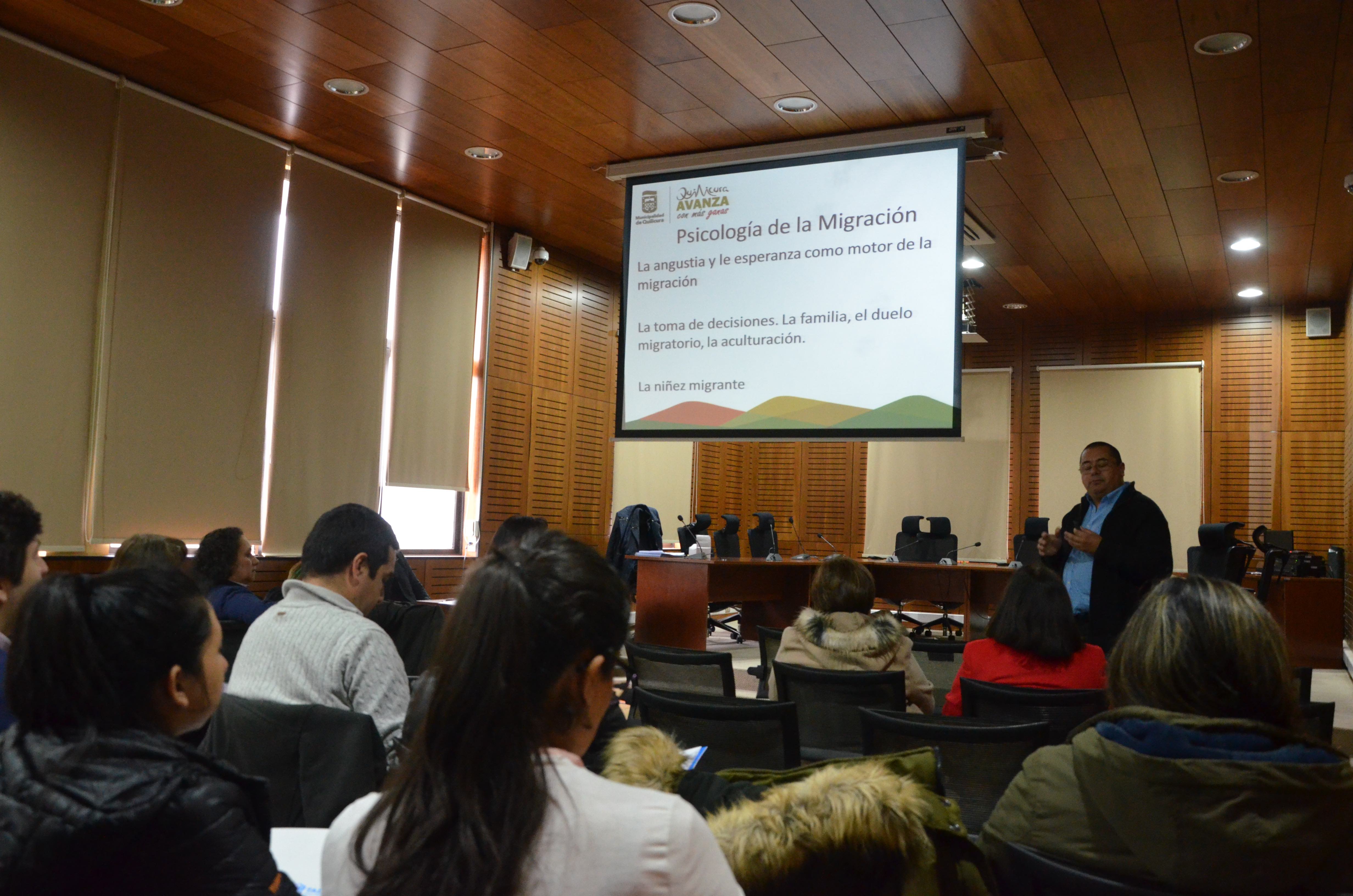 Durante la jornada, los funcionarios municipales tuvieron la oportunidad de conocer más en detalle la realidad de la región en esta materia, gracias a la exposición que realizó el Centro de Estudios de Migración de la Universidad Católica del Maule.