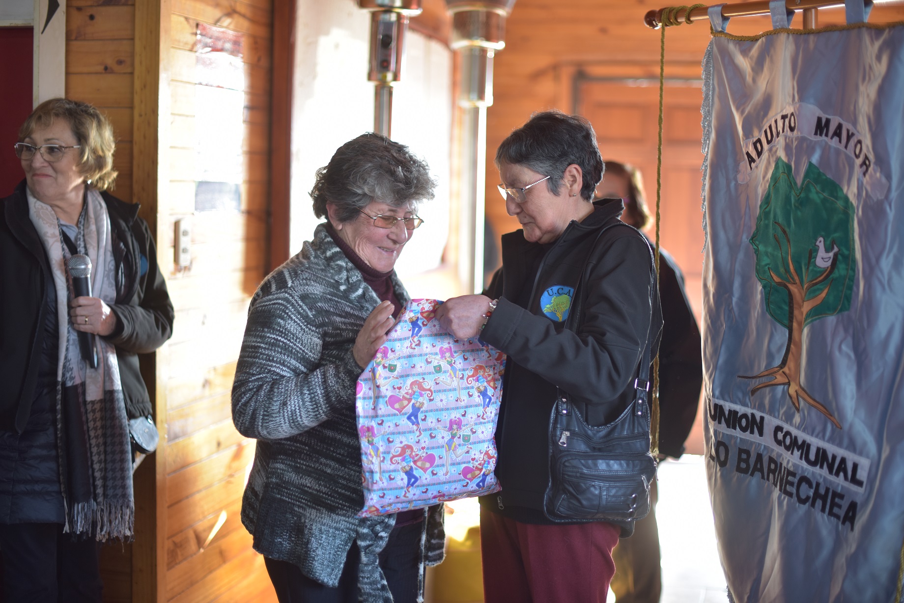 Con un almuerzo y la presentación del cantante Francisco Quinteros, los adultos mayores de Lo Barnechea hicieron entrega de un regalo y mercadería a los 38 adultos mayores presentes en la actividad. Ana cárdenas, presidenta de la Unión Comunal del Adulto Mayor de Lo Barnechea dijo que “nosotros todos los años hacemos una obra social y nuevamente elegimos Talca, segundo año consecutivo que venimos y quedamos con mucho ánimo por el recibimiento y por supuesto tenemos que ayudarnos uno con otros”.