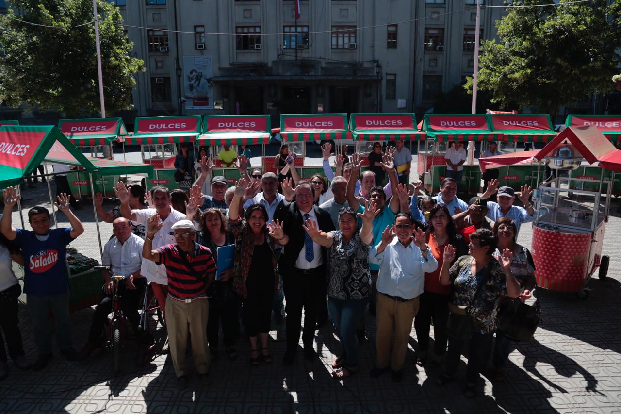 Hoy se realizó la entrega de carritos de dulces y cabritas a comerciantes que forman parte del comercio ambulante de la calle 1 Sur de la ciudad de Talca. Los carros fueron entregados en comodato a los comerciantes subsidiados por la Municipalidad.
