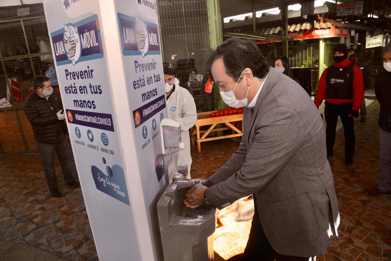 “Esta pandemia la tenemos que enfrentar unidos y por eso se agradece el gesto y el apoyo permanente de Nuevosur. Hoy estamos recibiendo estos seis lavamanos pero nosotros estamos adquiriendo 28 puntos de lavado de manos, los que serán distribuidos en el terminal de buses, calle 1 Sur, parques y lugares de mayor afluencia”, dijo la autoridad municipal.