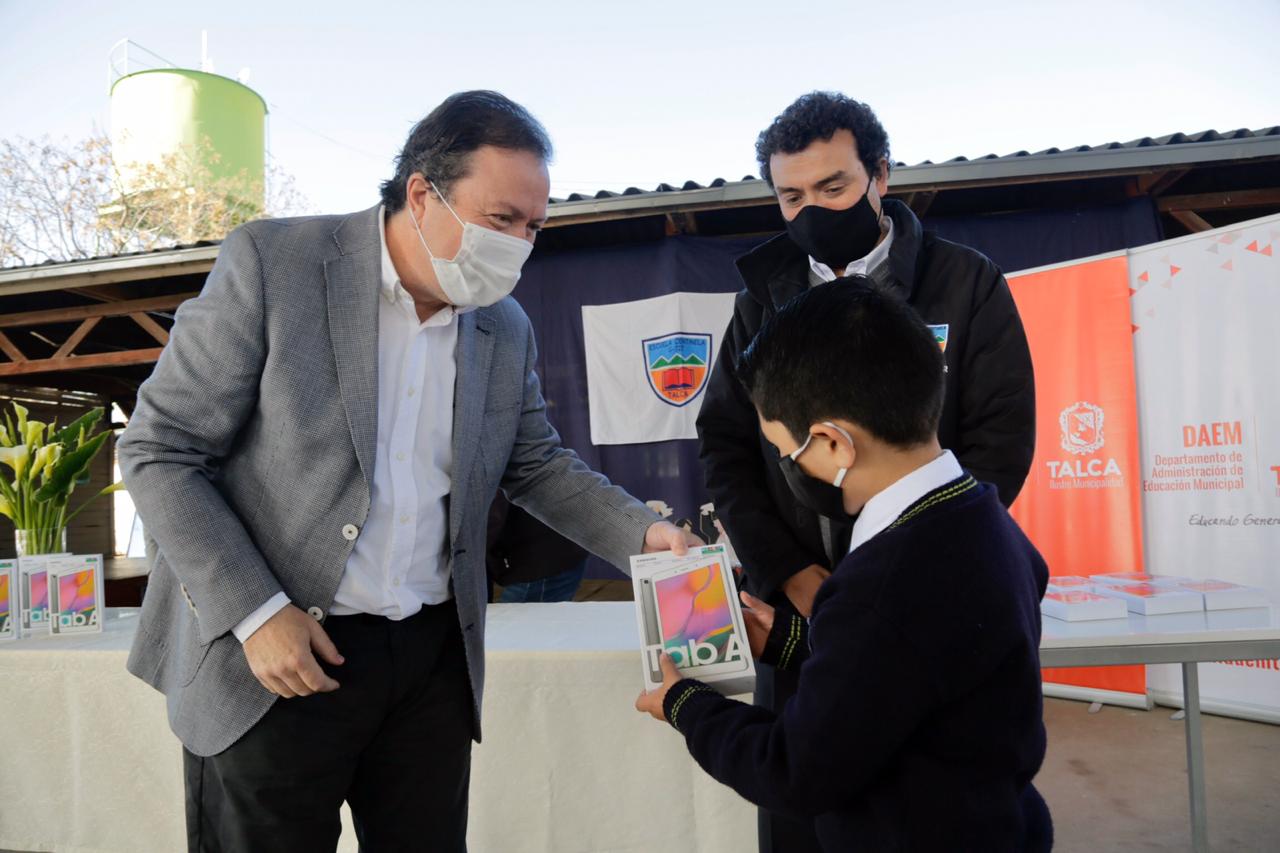 En una acotada y sencilla ceremonia en la Escuela Centinela, ubicada en el sector rural del mismo nombre en el límite nororiente de la comuna, el alcalde de Talca, Juan Carlos Díaz, encabezó la entrega de 21 tablets a alumnos de segundo y tercero básico, para apoyar en sus labores escolares facilitando la conectividad con el mundo digital.
