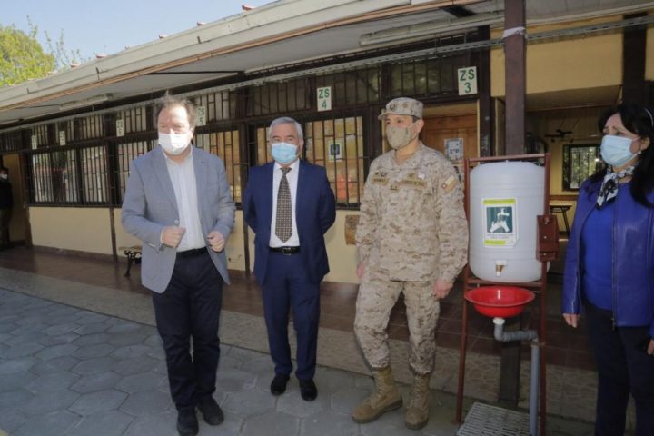 Por ello, el alcalde de Talca, Juan Carlos Díaz, junto a personal del Ejército encabezado por el comandante del Regimiento, teniente coronel Luis Ovando, recorrieron las instalaciones de la Escuela Carlos Spano, en la población Independencia de Talca, con la finalidad de verificar las labores de instalación de los implementos necesarios para el desarrollo de las votaciones.