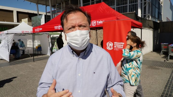 Haciendo un llamado a los vecinos de la comuna a controlar la movilidad y a salir a lo estrictamente necesario, el alcalde de Talca, Juan Carlos Díaz, inspeccionó en terreno el funcionamiento del punto de toma de muestras para exámenes PCR que implementó el municipio a través de la Dirección Comunal de Salud en el centro comercial del sector de La Florida.
