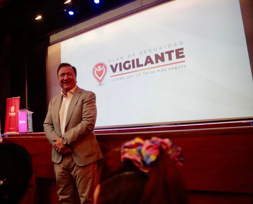Bajo el nombre de “Plan Vigilante” el alcalde de Talca, Juan Carlos Díaz Avendaño, presentó a la comunidad un renovado sistema de seguridad pública que considera cámaras de seguridad, postes inteligentes, oficinas sectoriales, autos eléctricos para el patrullaje, pórticos lectores de patentes, drones y un innovador método de teleprotección.