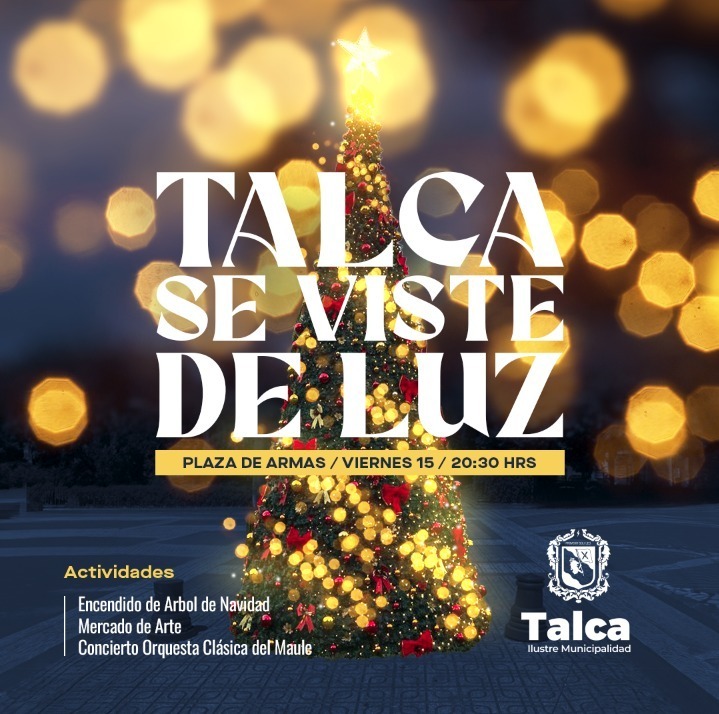 El centro de Talca será iluminado desde la 6 oriente por 1 sur, hasta la calle 1 oriente, intervención acompañada de varios puntos focales decorativos que, sin duda, serán codiciados a la hora de tomar una buena foto navideña. En la Plaza de Armas, en tanto, el protagonista de esta celebración que todos los asistentes veneran, será el infaltable árbol de Navidad de 14,5 metros que estará en el corazón de la ciudad para deleitar a los miles de niños y niñas, que se espera, presencien esta imponente intervención.