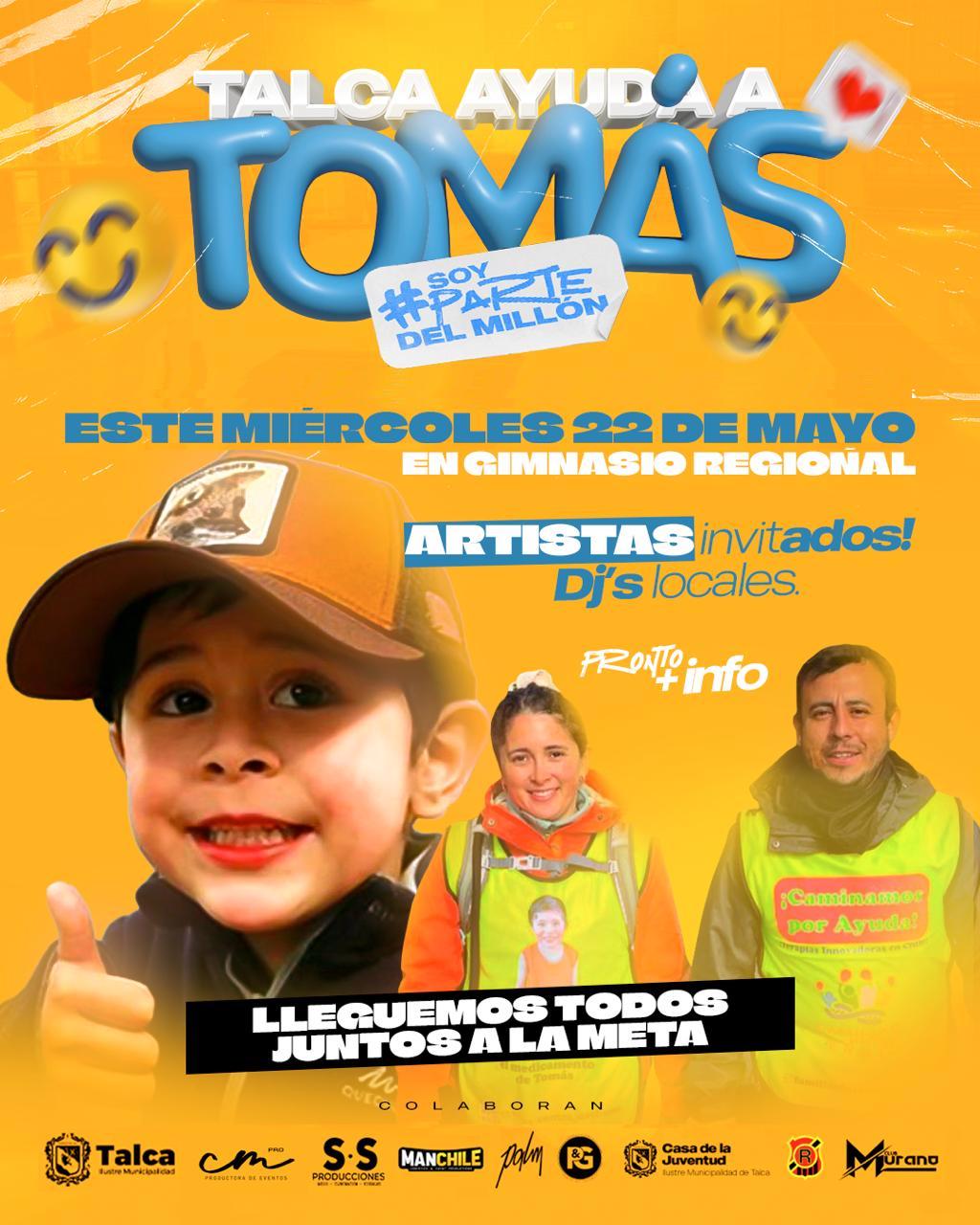 El alcalde de Talca, Juan Carlos Díaz, valoró la actividad mencionando que “todos conocemos la historia de Tomás y su madre Camila, y de esta noble causa solidaria llena de amor, por ello, hemos dispuesto del Gimnasio Regional como el lugar donde los talquinos y también los vecinos de otras comunas, puedan venir en familia para apoyar a Tomás, a un evento que nuevamente mostrará que los talquinos somos solidarios”.