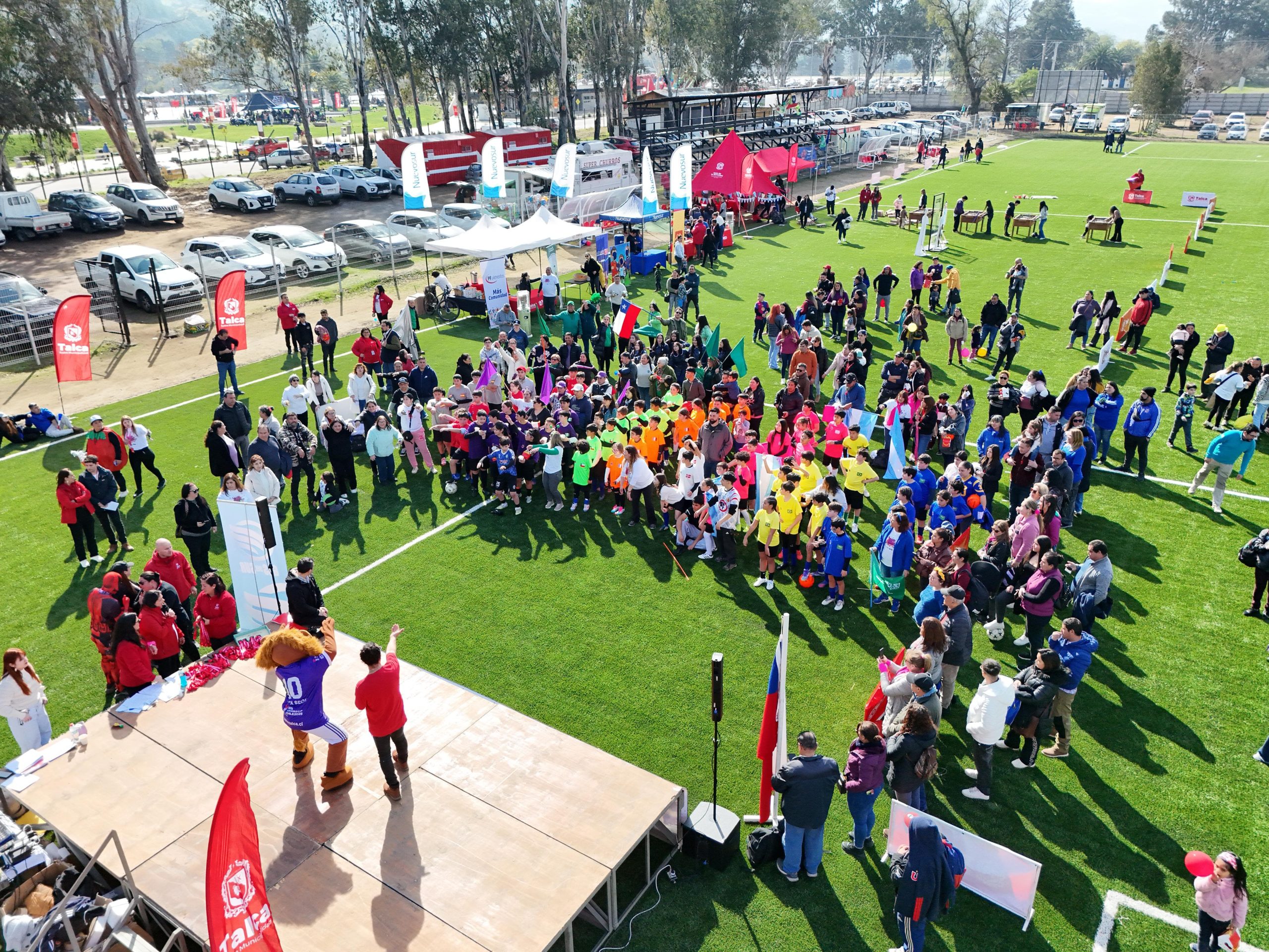 Este domingo 10 de agosto, cientos de familias llegaron al Complejo Deportivo Parque Río Claro para disfrutar y apoyar a los niños y niñas que participaron en el Encuentro Masivo Familiar de Fútbol 7, categoría Sub 12, como parte del lanzamiento oficial de la Fiesta de la Primavera 2025 en Talca, en el marco también del Día del Niño y además de la ante sala del Mundial Sub 20 de la FIFA.