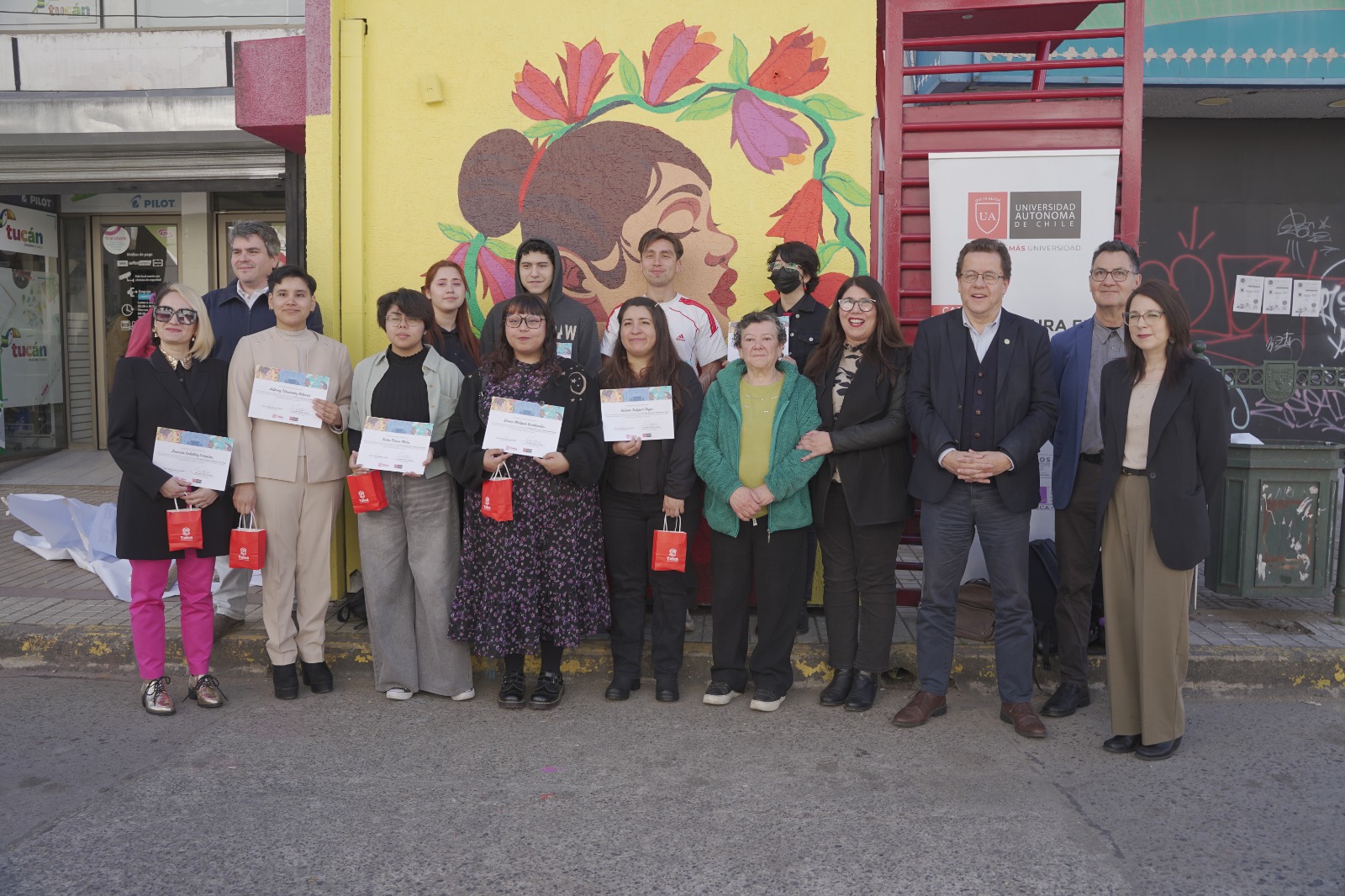 La Municipalidad de Talca, junto a la Universidad Autónoma de Chile, presentó las obras en los quioscos de suplementeros de calle uno Sur con 2, 4 y 5 Oriente, enmarcadas en el fortalecimiento del turismo, la identidad local y la puesta en valor del casco histórico.La Municipalidad de Talca en conjunto con la Universidad Autónoma de Chile, sede Talca, inauguraron tres murales en quioscos de suplementeros del centro (1 Sur con 2, 4 y 5 Oriente, respectivamente), como parte de las acciones culturales y turísticas impulsadas en el marco del Mundial Sub-20 y también parte de la recuperación y hermoseamiento del casco histórico de la ciudad. La iniciativa se desarrolló a través de la carrera de Licenciatura en Artes Visuales, cuyos estudiantes fueron los encargados de dar vida a las obras.En la oportunidad, Cristina Zúñiga, directora ejecutiva de la Corporación Municipal de Cultura de Talca, que es presidida por el alcalde Juan Carlos Díaz, mencionó: “Estamos muy contentos de que la casa de estudios se haya sumado a esta iniciativa de embellecer la ciudad, sobre todo el casco histórico y así, recibir a todos los visitantes que van a estar en Talca y a la comunidad talquina en el marco tdel Mundial Sub-20”. Por su parte, Marcelo Cevas, vicerrector de la Universidad Autónoma de Chile- sede Talca, explicó que “el objetivo fue hacer este arte mural, traspasarlo a la ciudadanía a través de tres quioscos que se encuentran ubicados acá en el centro de la ciudad de Talca y con eso contribuir no solamente al arte, sino a la vinculación con el medio que nos rodea y también con el embellecimiento de la ciudad que tiene que pensar en ir proyectándose como un destino turístico a futuro”.Rescatando la identidad localLas creaciones artísticas, tituladas “Floreció el Copihue Rojo”, “Danza de Aves” y “Oda a la Cultura”, rescatan elementos identitarios de la ciudad y la región, como la mujer campesina, la fauna local, el patrimonio arquitectónico y la artesanía. Cabe mencionar que estos quioscos tienen un valor agregado para la ciudad, puesto que se intervino el lugar de trabajo de suplementeros, los cuales pertenecen a un gremio reconocido recientemente como Institución Destacada de la Sociedad Talquina durante el celebración del aniversario Nº 283 de la comuna, realizado el 12 de mayo de este año.Por su parte, Antonella Fernández es estudiante de segundo año de la carrera de Artes Visuales de la Universidad Autónoma de Chile – Sede Talca, ella explicó los diseños realizados: “Elegí una cueca, que influenció el copihüe rojo, y en sí quería que este representara el copihüe, por eso lo elegí una mujer con un vestido de cueca. También el de las aves, elegí cuatro emblemáticas de Chile (…) pero busqué los diseños, hice la composición y lo llamé danza de aves, y el último fue la representación del Mercado, en el cual quería representar cosas que lo componen en sí”.La actividad se suma a un plan integral de embellecimiento y activación urbana que la Municipalidad ha impulsado en torno al Mundial Sub-20, que incluye mejoras en calle 1 Sur, instalación de puntos decorativos y coordinación intersectorial para recibir a visitantes nacionales y extranjeros. “Talca, Capital Mundial”, busca consolidar a la comuna no solo como sede deportiva, sino también como un polo de turismo cultural y patrimonial.