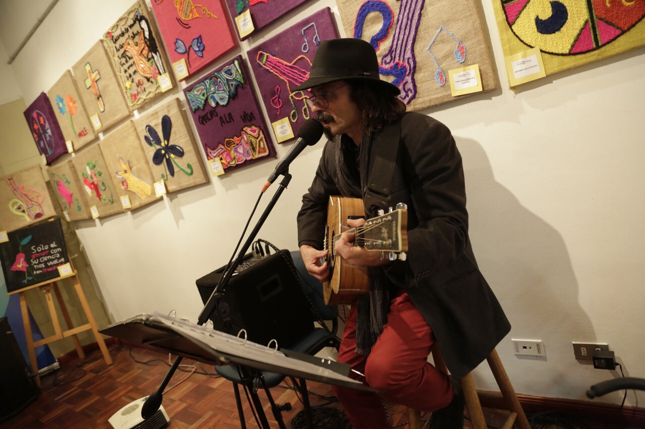 El encuentro reunió más de 50 personas, quienes pudieron apreciar la exposición “Colores para Violeta”, preparada por las estudiantes de séptimo básico del Liceo Santa Teresita quienes se inspiraron en Violeta Parra, su arte y su historia, para crear más de 40 cuadros llenos de color e historia.